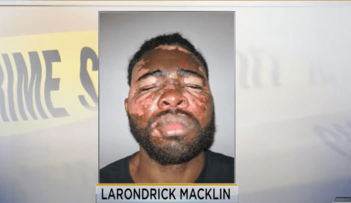 Police in Decatur, a city in the northern part of the state, were called to the victim’s home on August 1 on the 280 block of Wimberly Drive SW in Decatur, Alabama for a report of a domestic dispute. Officers arrived and found the suspect, 31-year-old Larondrick Macklin, with burns on his face.